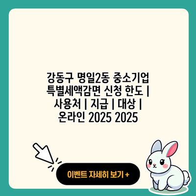 중소기업은 국가 경제에서 매우 중요한 역할을 하고 있어요. 그런데 많은 중소기업들이 세무적 부담으로 어려움을 겪는 경우가 많아요. 그래서 정부에서 중소기업을 지원하기 위해 특별세액감면제를 운영하고 있죠. 특히 강동구 명일2동에서도 이 제도를 통해 많은 혜택을 누릴 수 있어요. 본 글에서는 강동구 명일2동 중소기업 특별세액감면 신청 한도, 사용처, 지급 및 대상에 대해 상세히 알아보도록 할게요.