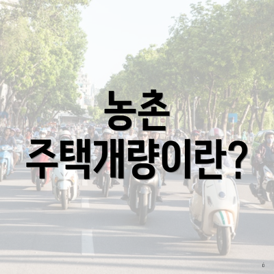 농촌 주택개량은 노후된 농촌 주택의 구조를 개선하고, 거주 환경을 향상시키기 위한 제도입니다. 이를 통해 농촌에 사는 주민들이 보다 안전하고 쾌적한 환경에서 생활할 수 있도록 지원합니다.