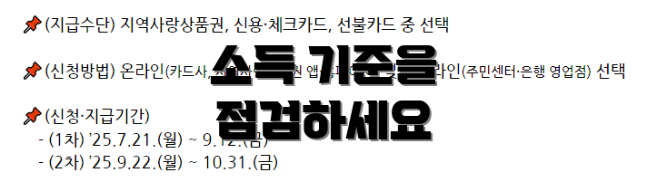 신청자는 반드시 소득기준을 만족해야 하며, 자격에 해당하지 않을 경우, 지원금 신청이 불가하니 유의하시기 바랍니다.