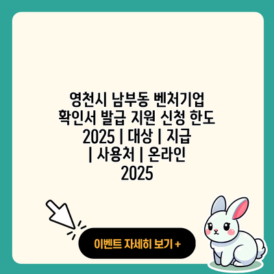 영천시 남부동 벤처기업 확인서 발급 지원 신청 한도 2025 | 대상 | 지급 | 사용처 | 온라인 2025