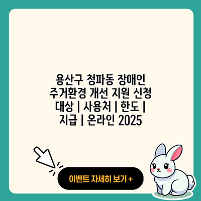 지원 신청을 위해서는 몇 가지 조건을 만족해야 해요. 용산구 청파동의 장애인주거환경 개선 지원 신청 대상은 다음과 같아요: