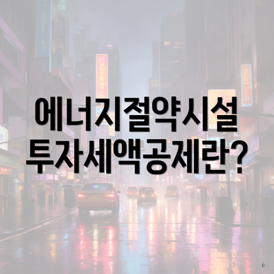 A1: 에너지절약시설 투자세액공제는 기업이나 개인이 에너지 절약을 위해 특정 설비에 투자할 경우 세액을 공제받을 수 있는 제도입니다.