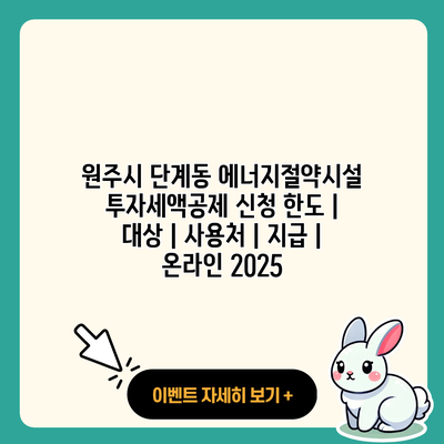 원주시 단계동 에너지절약시설 투자세액공제 신청 한도 | 대상 | 사용처 | 지급 | 온라인 2025