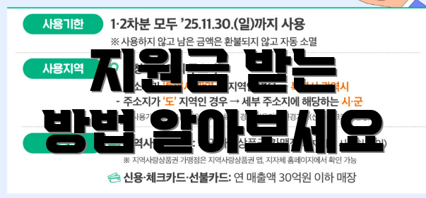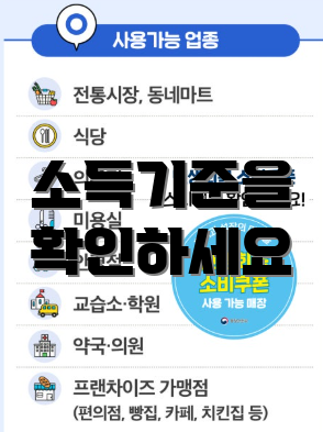 쿠폰을 받은 후, 지정된 사용처에서 사용 가능합니다. 쿠폰 사용 시에는 소득 기준에 맞는 확인 절차가 필요할 수 있습니다. 해당 가맹점에서는 바코드 스캔 또는 QR코드를 통해 거래를 완료하세요.