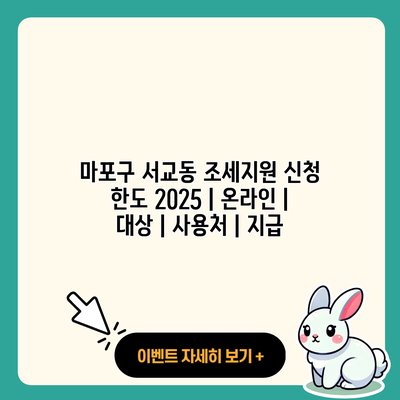 마포구 서교동 조세지원 신청 한도 2025 | 온라인 | 대상 | 사용처 | 지급