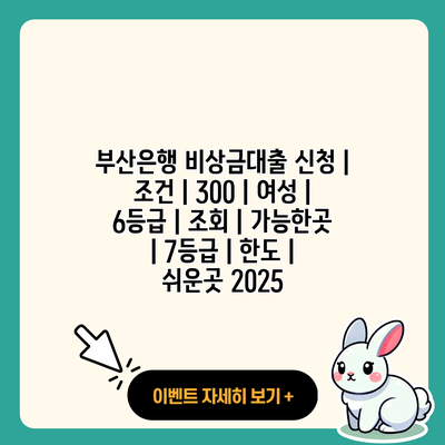 ✅ 부산은행 비상금대출 신청 방법과 조건을 자세히 알아보세요.