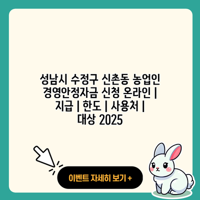성남시 수정구 신촌동 농업인 경영안정자금 신청 온라인 | 지급 | 한도 | 사용처 | 대상 2025