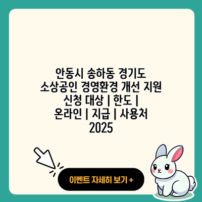 소상공인은 지역 경제의 핵심적인 역할을 하고 있죠. 그중에서도 경영 환경 개선을 위해 지원하는 제도가 있다는 걸 알고 계셨나요? 소상공인 경영환경 개선 지원은 어려운 경제 상황 속에서 소상공인이 더 나은 경쟁력을 갖출 수 있도록 돕는 중요한 제도예요. 이번 포스팅에서는 안동시 송하동의 소상공인 경영환경 개선 지원 신청 대상, 한도, 온라인 신청 방법 등을 자세히 설명해드릴게요.
