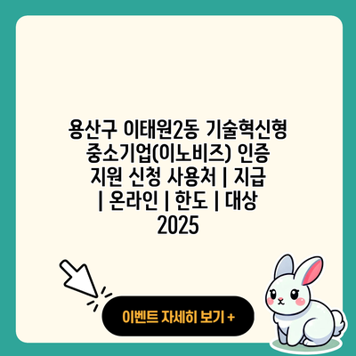 용산구 이태원2동 기술혁신형 중소기업(이노비즈) 인증 지원 신청 사용처 | 지급 | 온라인 | 한도 | 대상 2025