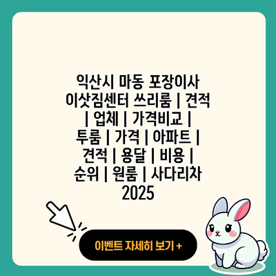 ✅ 익산시 마동 포장이사 비용 절약 방법을 알아보세요.