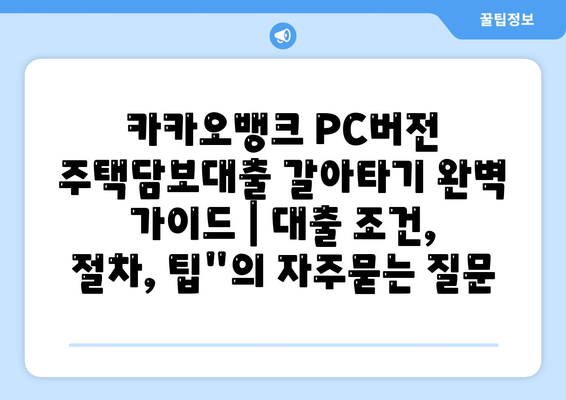 카카오뱅크 PC버전 주택담보대출 갈아타기 완벽 안내 | 대출 조건, 절차, 팁