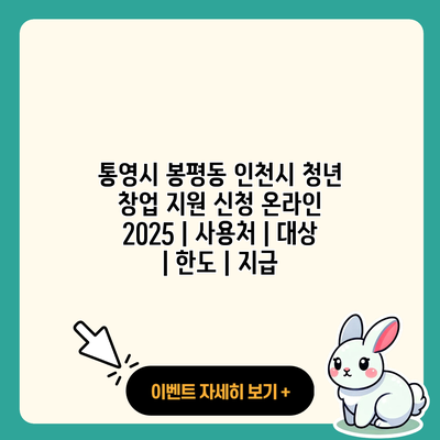 통영시 봉평동 인천시 청년 창업 지원 신청 온라인 2025 | 사용처 | 대상 | 한도 | 지급