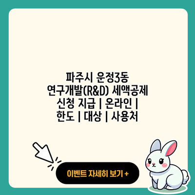 파주시 운정3동 연구개발(R&D) 세액공제 신청 지급 | 온라인 | 한도 | 대상 | 사용처