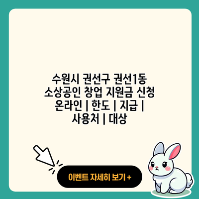 수원시 권선구 권선1동 소상공인 창업 지원금 신청 온라인 | 한도 | 지급 | 사용처 | 대상
