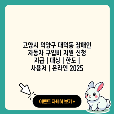 고양시 덕양구 대덕동 장애인 자동차 구입비 지원 신청 지급 | 대상 | 한도 | 사용처 | 온라인 2025