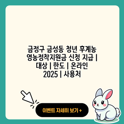 금정구 남산동 청년 창업농 영농정착지원금 신청 한도 | 온라인 | 지급 | 사용처 | 대상