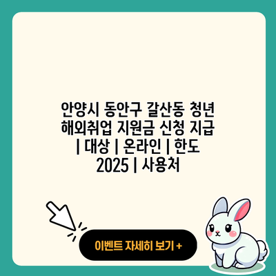 안양시 동안구 달안동 청년 해외취업 지원금 신청 대상 | 한도 2025 | 온라인 | 사용처 | 지급
